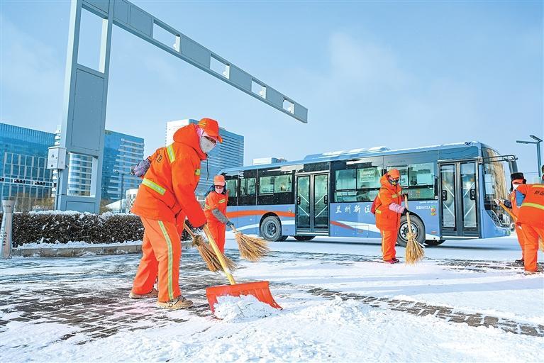 兰州新区市政集团第一时间组织清洁工开展清雪除冰工作