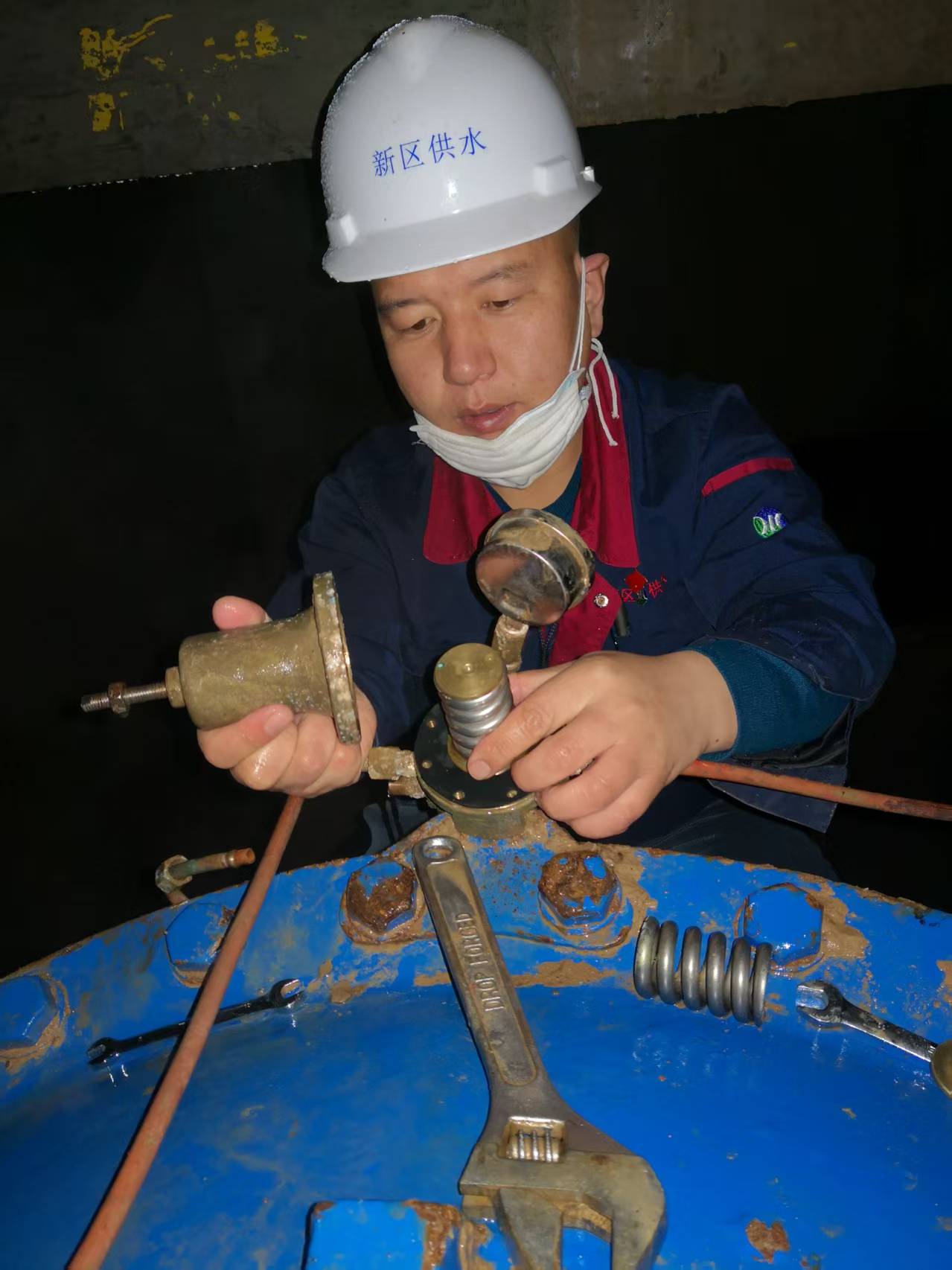 对一名基层供水人来说,他初心就是做好供水保障服务,第一时间处理供水问题,让用户切实感受到用水的舒心、暖心、放心。作为直接面对用户的排头兵,在供水管道设施抢修维修的岗位上他始终牢记党员初心、牢记为民使命,牢固树立以用户为中心的服务意识,始终冲锋陷阵、雷厉风行,时刻做到眼中有活、脚下有风、事不过夜。多年来,桂惠元同志以契而不舍的精神,脚踏实地的干劲,由一名管道学徒工慢慢地成长为一名维修骨干,直至现在的管道维修带头人----维修班班长,工作、职位虽然发生了变化,可他工作热忱没有改变,为用户服务的态度没有改变,忠于职守以司为家、以岗为荣、以苦为乐、自始至终都坚持奋战在管道维修生产的第一线,每时每刻都舍不得放下手中那把使用多年的管钳。他热爱管道维修工作,管道维修同样也离不开他。为了更好的工作,他经常奔波于兰州新区的大街小巷,深入每村每户,细心查看对照管道图纸资料,全面的掌握全地区的管网分布及走向,为今后维修工作奠定了坚实的基础。2019年大年初三,桂惠元同志正在单位值班室值班,凌晨六点三十五分,桂惠元同志接到电话后立即赶往中川镇下华家井村社王大爷家进行抢修。当时水表井漏水已经淹没水表有一米多深,此时关闭主阀门会影响到其他用户用水,他果断的脱掉外套下到井室,钻进冰冷刺骨的水中,一点点摸索着终于了关闭阀门,控制住了跑水,他的衣服全湿透,但他顾不上冻得瑟瑟发抖的身体,赶紧调配水泵工具,自己拿起工具一口气干了一个多小时终于修好了漏水的管道,桂慧元同志用心用情为民服务,积极解决用户难题的奉献精神得到人民群众的好评。